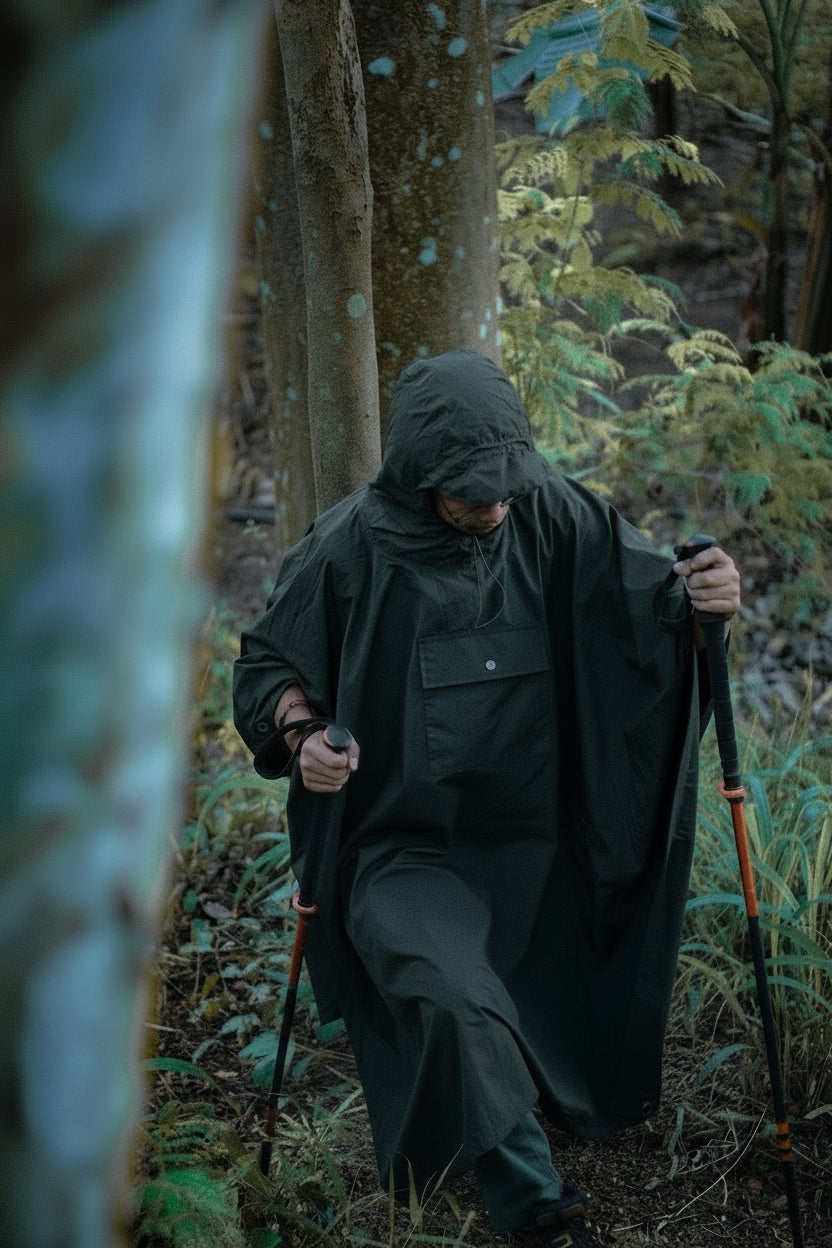Ce poncho tactique imperméable vous protège totalement contre la pluie hivernale, le vent glacé et les conditions extrêmes tout en vous laissant une liberté de mouvement totale. Plus fort : il se transforme en tarp ou abri d'urgence en quelques secondes. Un seul équipement, trois protections essentielles.